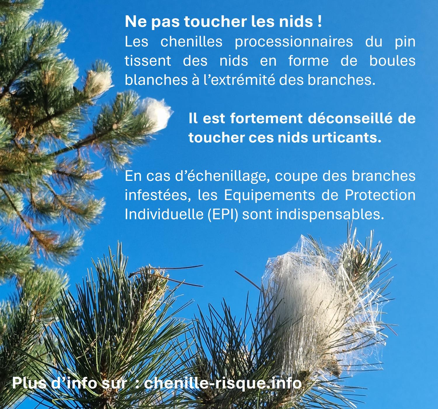 Les chenilles processionnaires urticantes du pin descendent le long du tronc et migrent vers le sol pour se nymphoser dans le sol. Les processions de nymphose s’effectuent principalement de février à début mai en Île-de-France. Mais il est possible que des processions s’effectuent de fin octobre à début décembre.